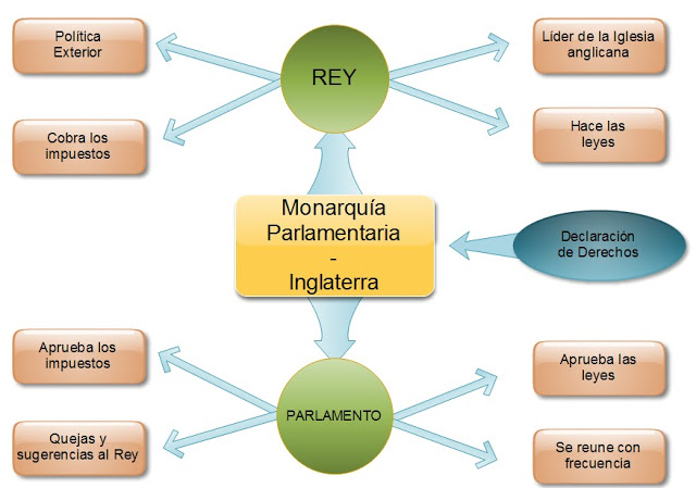 Tras una segunda revolución provocada por la política absolutista de Jacobo II, se pone fín a la dinastía de los Estuardo, se le ofrece la corona a Guillermo de Orange, el cual jura la Declaración de Derechos, limitando los poderes del monarca, convirtiéndose Inglaterra en una monarquía de poder limitado en la cual: