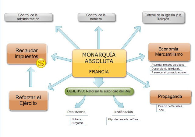 La política económica adoptada por las monarquías absolutas siglo XVII fue el mercantilismo: consideraba que la riqueza de un país residía en la cantidad de metales preciosos que poseyera.