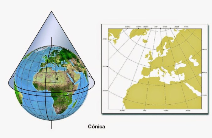 Los más usados son la proyección cónica, la proyección plana y la proyección cilíndrica.