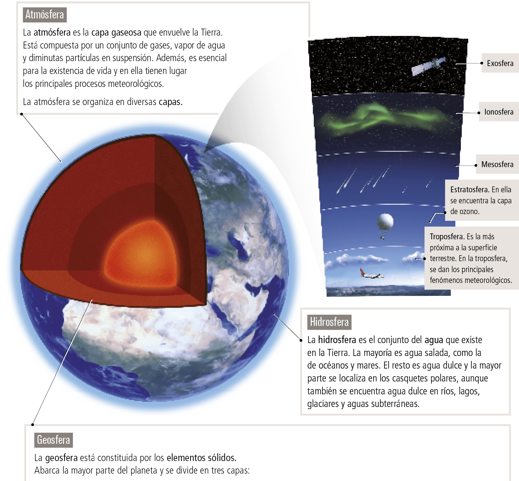 La vida en la Tierra se desarrolla en la BIOSFERA, que es el espacio que envuelve la tierra por debajo y arriba de la superficie del planeta.