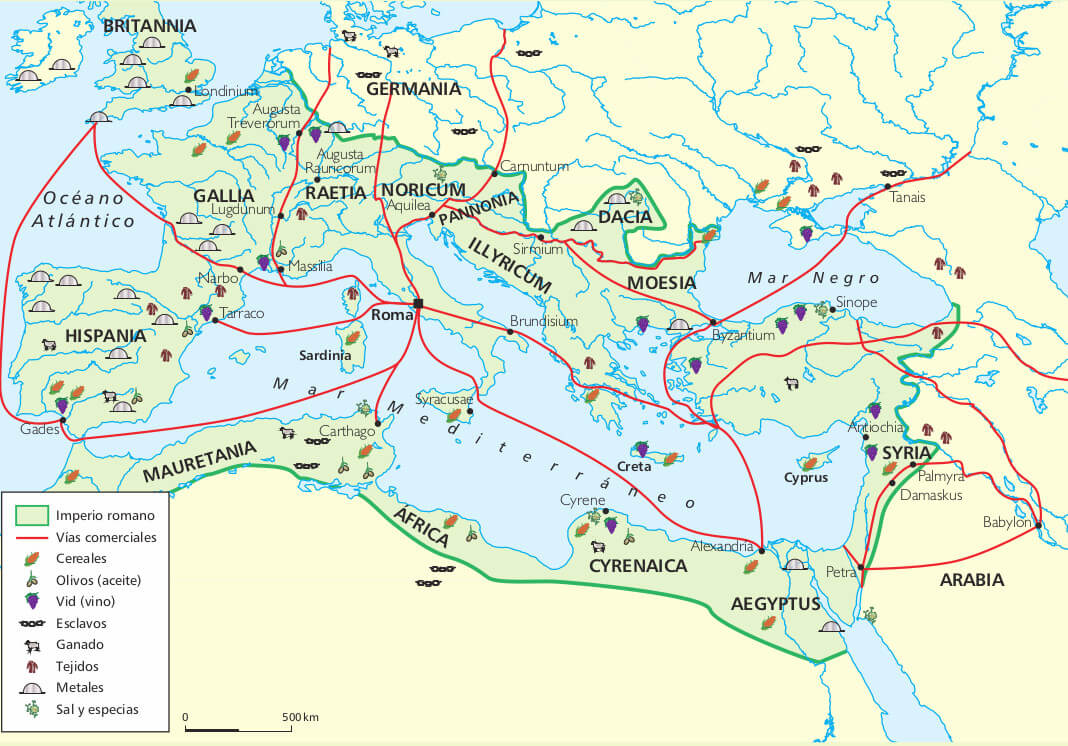 - La Pax romana, fue una época de paz que se caracterizó por una gran estabilidad social, política y económica . Los territorios serán organizados en provincias dirigidas por un gobernador. Los romanos fueron implantando sus costumbres, religión, leyes, lengua y modos de vida en los territorios conquistados, en un proceso conocido como romanización. En el 212, el emperador Caracalla concedió la ciudadanía romana a todos los habitantes libres del imperio