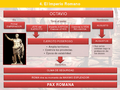 En el año 27 a.C. se inicia la última etapa de la historia de Roma, el Imperio. El emperador concentró en su persona todo el poder político, jefe del ejército y el de sumo sacerdote. El título de emperador no era hereditario. Sin embargo, muchos fueron designados por el emperador anterior.