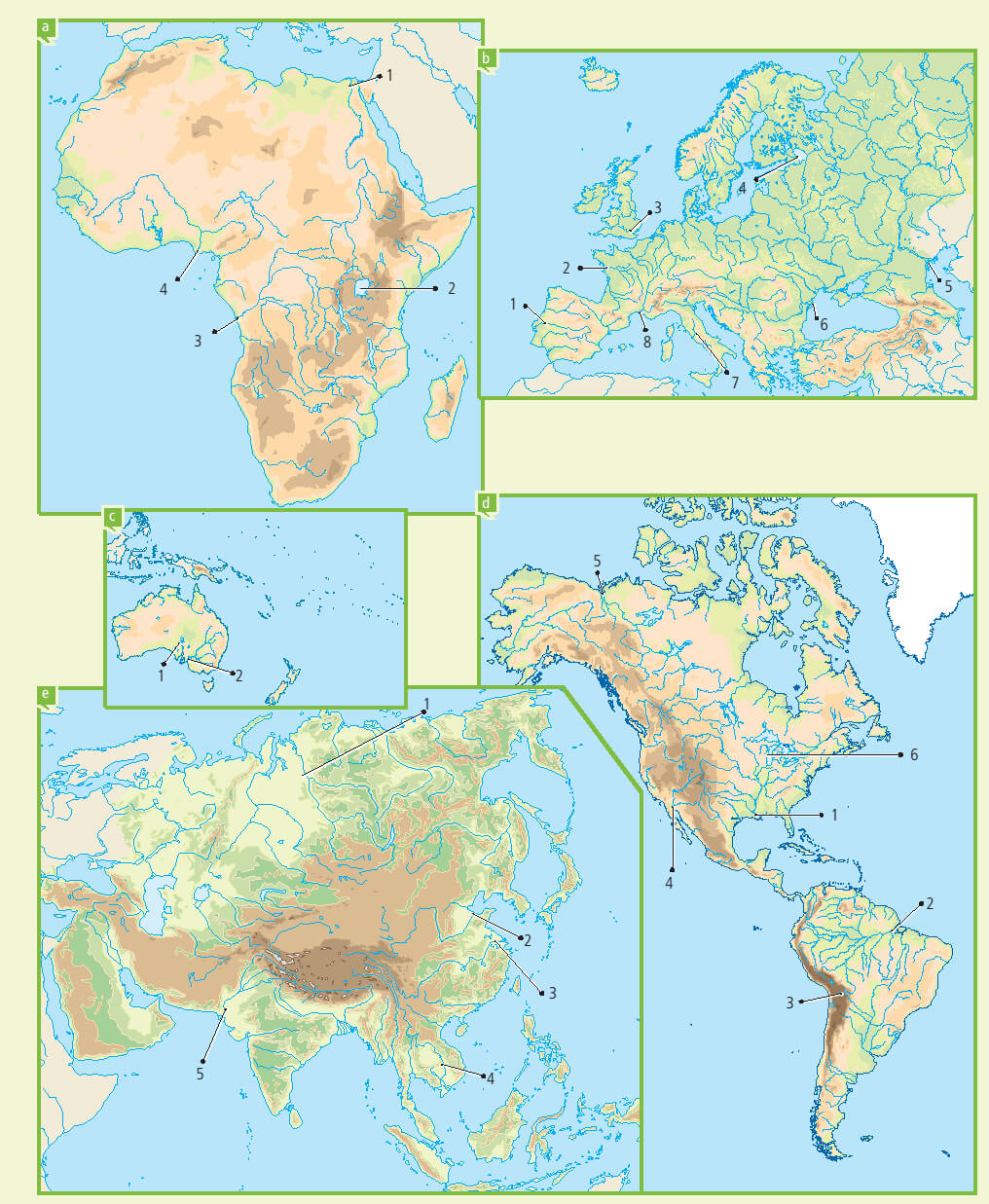 – Los ríos son largos y caudalosos, desembocan en los océanos Glacial Ártico, Índico y Pacífico. Los más importantes son el Yangsté (el más largo con 5.800 Km.), el Obi, el Yeniséi, el Lena, el Huang He, el Mekong, el Amur, el Ganges y el Indo.