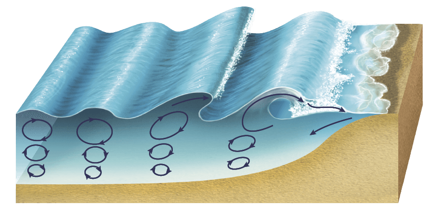 Las olas: son ondulaciones de la superficie del mar provocadas por el viento