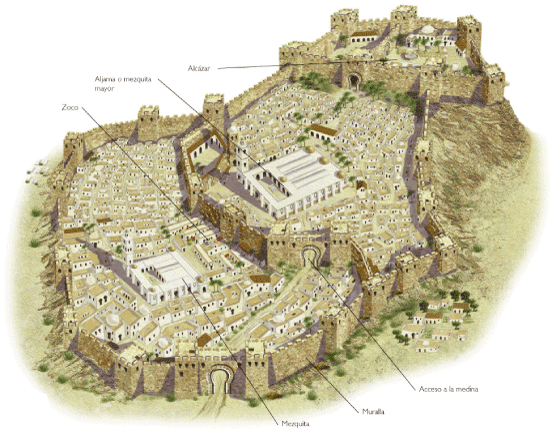 La cultura islámica en general, y por tanto la andalusí, eran principalmente urbanas. Las grandes ciudades solían tener los mismos elementos: