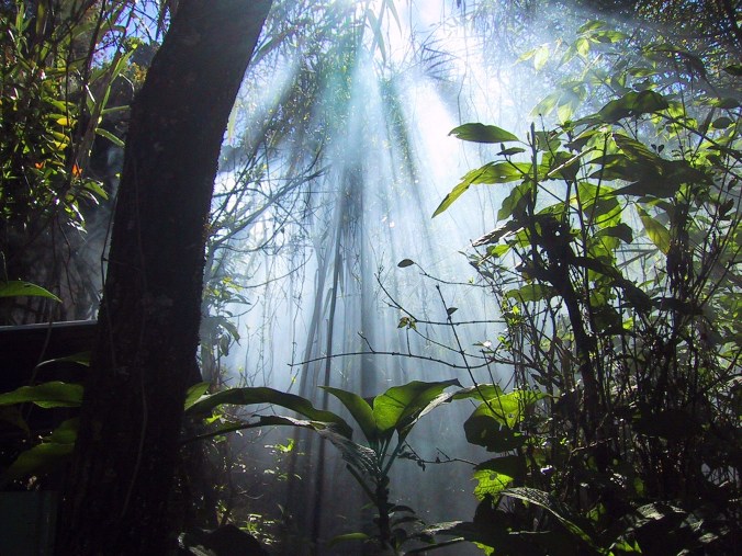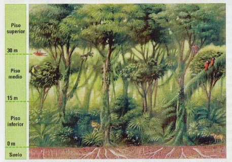 El piso medio está formado por plantas que intentan captar la energía solar por medio de hojas muy grandes.