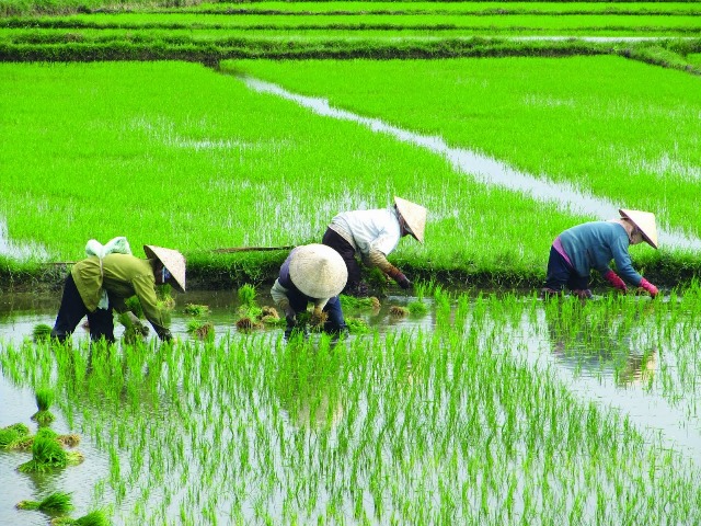 Agricultura irrigada del arroz: es propia de las regiones monzónicas, aprovecha la abundancia de agua para inundar los campos de cultivo.