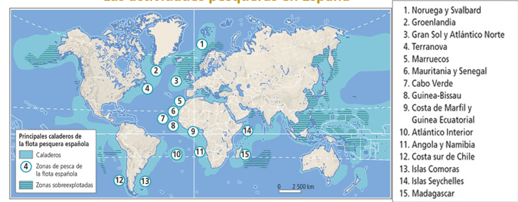 Es la actividad económica que se dedica a la captura de peces y otros animales en mares, ríos o lagos. La pesca se concentra en los caladeros, que son zonas donde abundan peces.