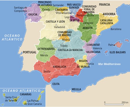 Territorialmente España se organiza en Comunidades Autónomas, Provincias y Municipios.